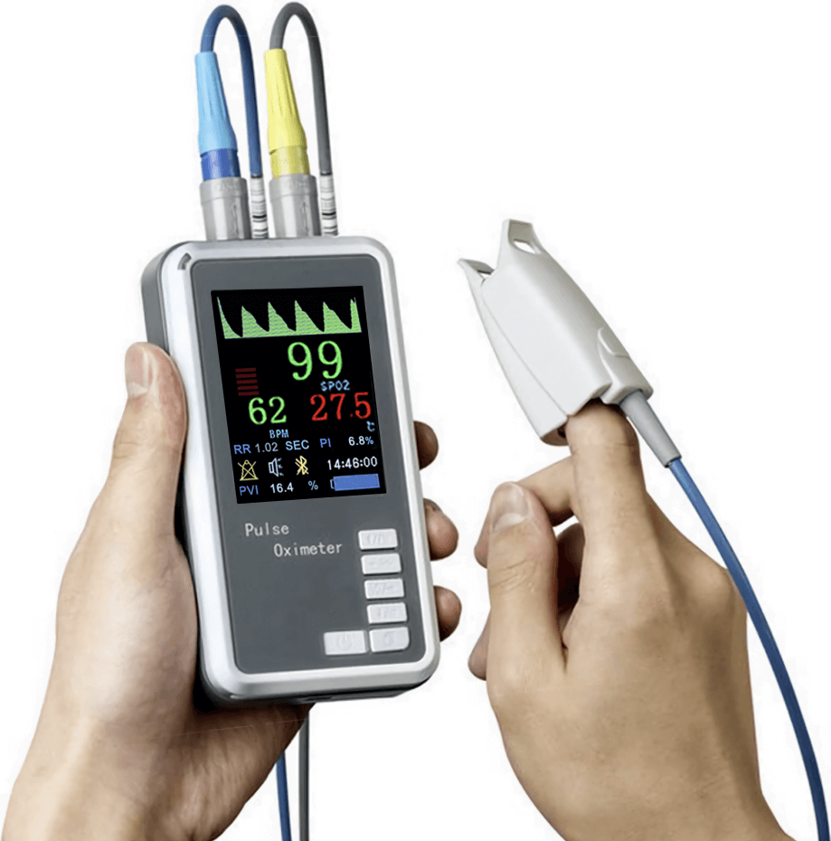 - Monitor: SpO2, PR, PI, RR, PVI, RESP, TEMP