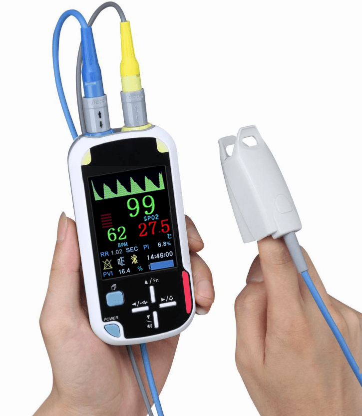 - Monitor: SpO2, PR, TEMP, PI, RR, PVI, RESP.